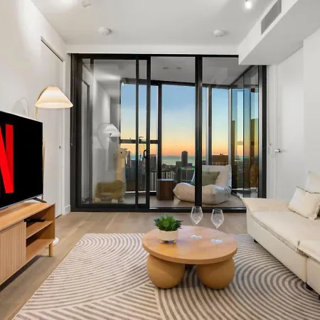 Das Apartment 66Th Floor City Skyline View 3B2B Escape Melbourne City in Melbourne City befindet sich ungefähr 1 Kilometer vom Arts Centre Melbourne und etwa 25 Gehminuten von der Eureka Skydeck 88 Aussichtsplattform entfernt.